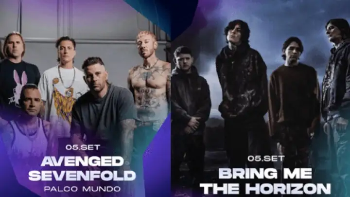 A produção do Rock in Rio anunciou, nesta terça-feira (3), mais duas atrações para a edição de 2026 no Rio de Janeiro. As bandas Avenged Sevenfold e Bring Me The Horizon foram confirmadas no Palco Mundo, no dia 5 de setembro, indicando que a data pode se tratar de um dia voltado para o rock e metal.